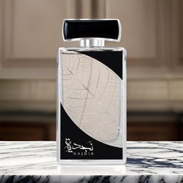 Najdia by Lattafa Perfumes is a Aromatic Aquatic fragrance for women and men. Najdia was launched in 2020. Top notes are Lemon, Cinnamon, Apple, Lemongrass and Bergamot; middle notes are Watery Notes, Lavender, Cardamom and Rosemary; base notes are Musk, Amber, Sandalwood, Cedar and Tobacco.